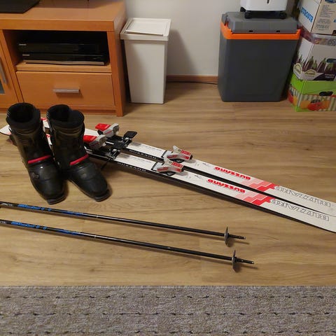 Myytävänä aikuisten laskettelupaketti. Sukset Salomon 170cm, sauvat, kypärä koko 58, monot koko 43-44, kahdet laskettelulasit. Suksien pohjat hyvässä kunnossa. Suksipussi.
