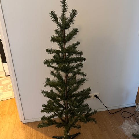 Muovinen joulukuusi, uutta vastaava kunto. Alunperin ollut mukana led-valot, jotka kadonneet.