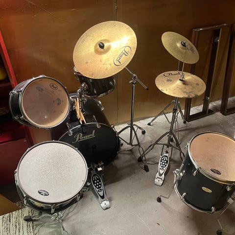 Myytävänä Pearlin Export rumpupatteri. Kuvista ilmenee kalvot, pellit ja pedaalit. Mukana jakkara. Myös järkevä tarjous mahdollinen.