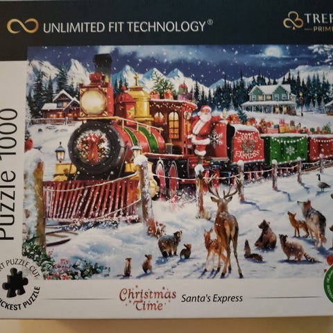 Cherry Pazzi merkkinen laadukas palapeli 1000 palaa. Hyvät paksut napakat palat. Söpö koira ja metsä aiheinen joulupalapeli. Kolme koiraa tonttulakit päässä metsässä missä kuuset on koristeltu, lahjat on vieressä ja lunta sataa hiljalleen. Uutena ostettu ja kerran tehty uudenveroinen laadukas palapeli. Kaikki palat tallella.