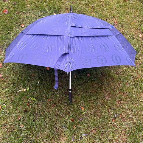 Koska kentällä harvoin tarvitsee kahta sateenvarjoa, niin laitetaan toinen myyntiin. yksi tukipylväistä sateenvarjossa huomaamattomasti korjattu nippusiteellä. ei huomaa kuin läheltä.