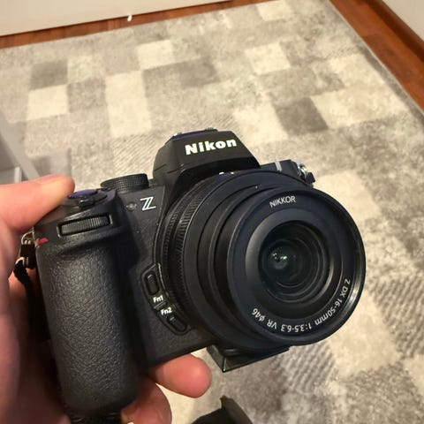 Nikon Z 50 digitaalikamera sisältäen rungon ja kaksi objektiivia. Mukana Nikkor Z DX 16-50 3,5-6,3 ja Nikkor Z DX 50-250 4,5-6,3 objektiivit. Kamera on suunniteltu monipuoliseen valokuvaukseen ja videokuvaukseen.