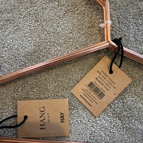 Hayn Hang -vaateripustimet/hengarit 10 kpl, väri upea kupari. Käytön jälkiä, mutta hyvässä kunnossa.