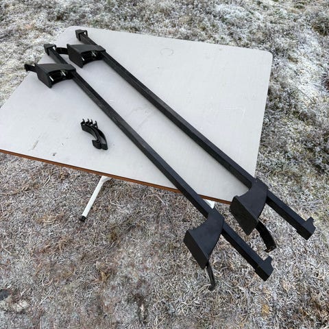 Kattokaiteelliseen autoon sopiva kattoteline. 3 kpl avaimia. 10 kpl varakumeja.