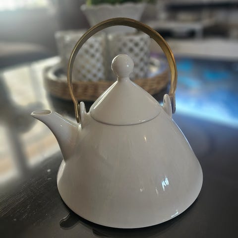Arabian Harlekiini sarjan kaunis turkoosi teekannu. Kunto on ehjä ja siisti, jopa uudenveroinen, vaikka tuotanto ajankohta oli 1980- ja 1990- lukujen taitteessa.