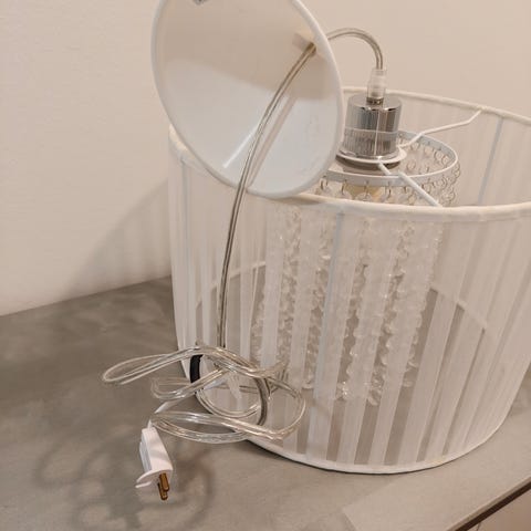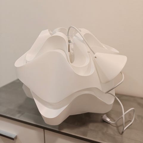 Ostettu prismasta muutama vuosi sitten ja ollut katossa uudesta saakka, joten täysin ehjä on. 2kpl suoraan käytöstä toimivaa 5W ledilamppua mukaan.