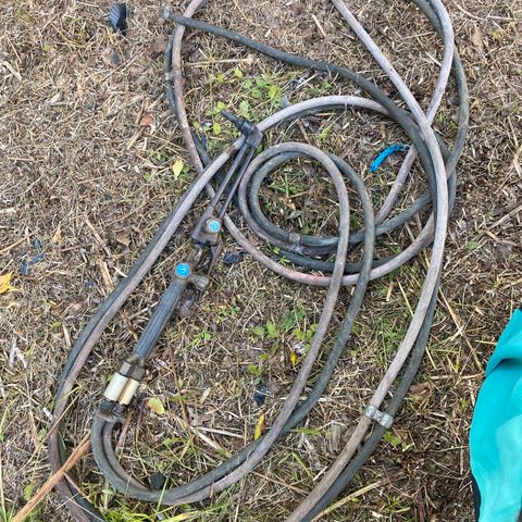 Käyttämätön puutarhaletku pistooliosaa ja liittimiä