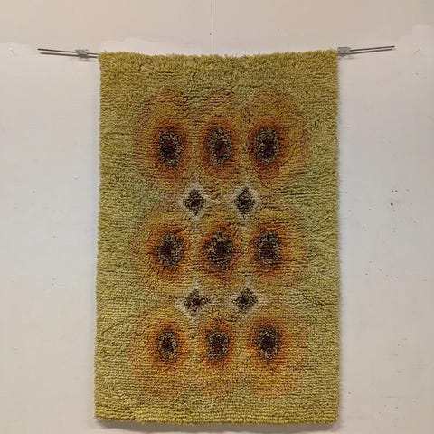 1970-luvulta oleva hieno ryijy. Tosi hyvässä kunnossa, kuin uusi. Ei haise, koiratalous. Puinen lista yläosassa. Ei mahdu valitettavasti omaan kotiin.