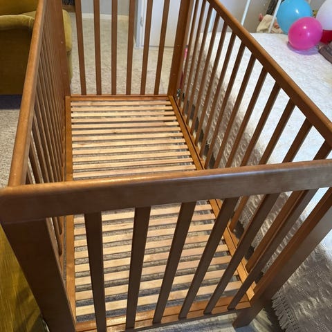 Klassinen valkoinen lasten pinnasänky. Tukeva. Pohjan saa säädettyä kolmelle eri tasolle. Leveys 65, korkeus 85 ja pituus 124. Kunto siisti. Pientä käytön jälkeä ruuvien kohdassa säädön jäljiltä.