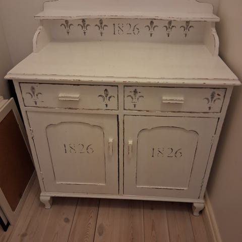 Sisustamiseen lähes satavuotias pesukomuutti. Paikka vatille. Maalattu joskus -50 luvulla uudestaan oranssiksi.