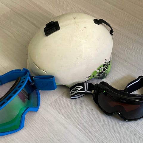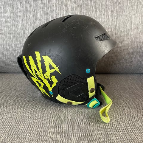 Kypärässä on naarmuja ja valkoisia merkkejä ja yks kolhu mutta tässä tyyliä mäkeen.