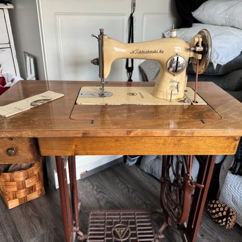 Myyntiin kaunis antiikkinen Tikkakosken ompelukonepöytä.