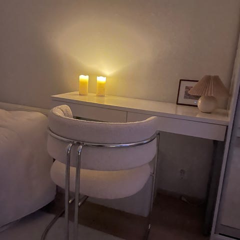 Pehmustettu istuin, tekonahkaa ja jauhemaalattua metallia.