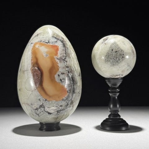Ei varauksia hintaan - upea onyx-pari Pallot räätälöidyissä telineissä.- 3
