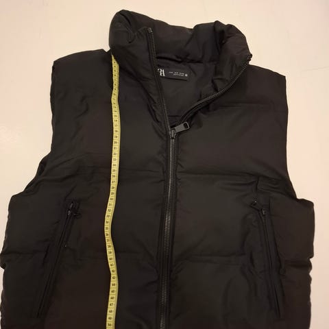 Musta zaran toppalivii lyhyempää mallia ja mukavan paksu ja lämmin liivi on hyvässä kunnossa eikä jälkiä