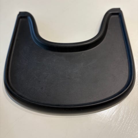 Harmaa tarjotin Tripp Trapp syöttötuoliin. Pinnassa on naarmuja ja kulumista. En postita.
