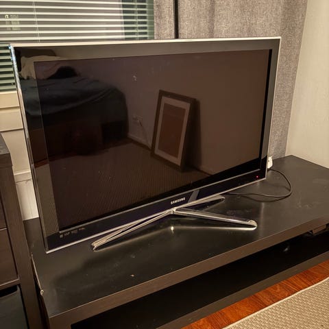Samsung TV yli 10v vanha, leveys 120, ruudun korkeus 72, kokonaiskorkeus 79.