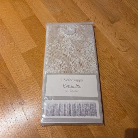Oranssi kukkakuvioinen verhokappa 240cm pitkä.
