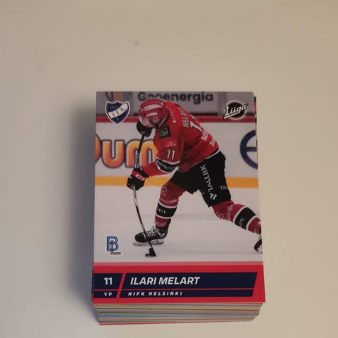 Kortit sisältävät pelaajakuva- ja tilastotietoja, kuten Kasperi Lindell ja Vincent Marleau.