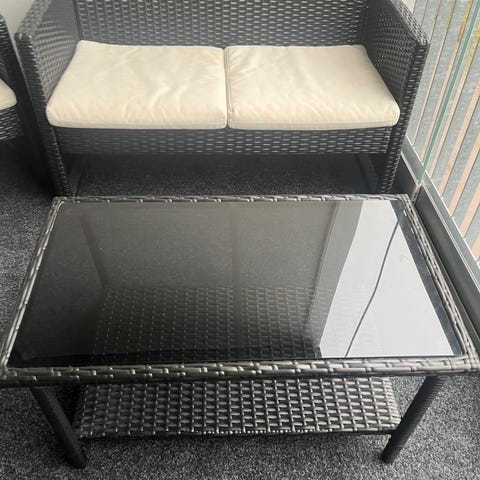 Myydään parvekepöytä ja kaksi tuolia kuvassa näkyvine tekstiileineen (tai ilman jos eivät kelpaa kaupanpäällisiksi). Nouto Tapiolasta. Hinta 30€.