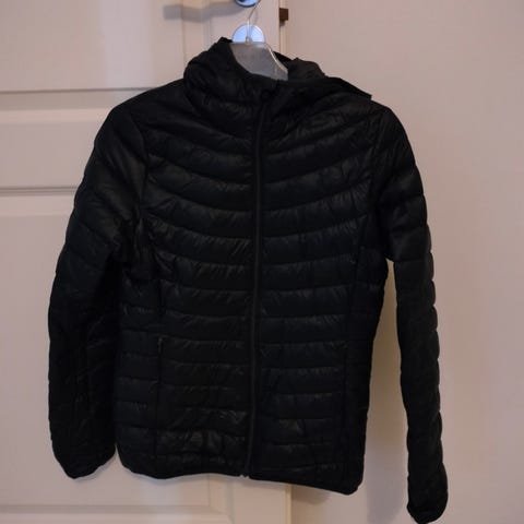 Ehyt ja puhdas Everestin kevyt untuvatakki hupulla.