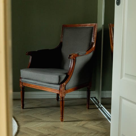 Tuolissa on havaittavissa pientä kulumaa käsinojissa, mutta se on muuten hyvässä kunnossa.
