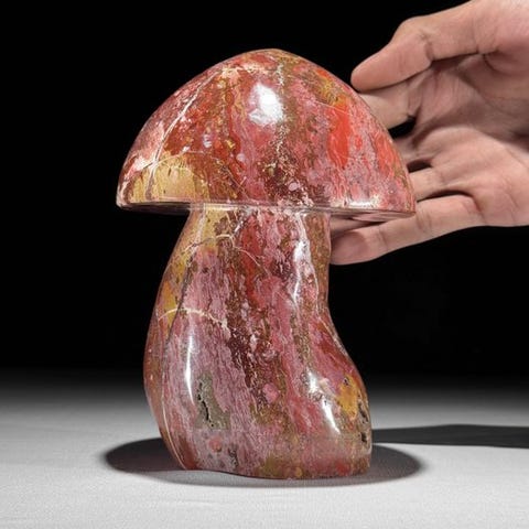 Upea käsin veistetty sienimäisen muotoinen rubiinikivi.