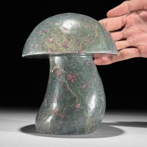 Ei lähtöhintaa - Käsin veistetty Ruby Zoisite sieniveistos. Uniikki keräilye