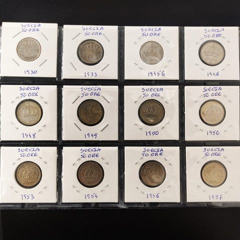 Ruotsi. Lote de 20 moedas de prata da Suécia 1916-1956 ()