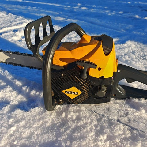 Myydään keltainen Stiga SP 386 merkkinen moottorisaha. Tehopakkaus, hyvä saha on. Bensakäyttöinen, kakstahti.