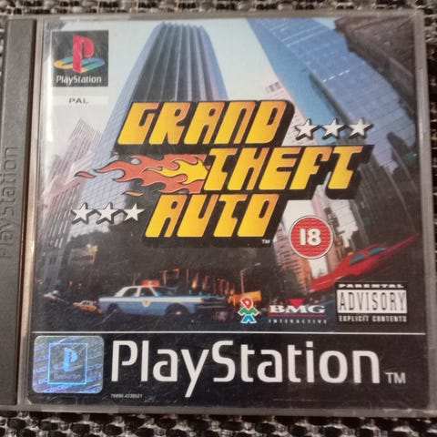 Grand Theft Auto. Ikäraja 18+, sisältää fyysisen pelilevyn, ohjekirjan ja kotelon.