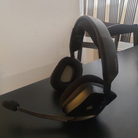 Vähässä käytössä ollut peliheadset. Mukana tulee mikrofoni, dongle, ja usb-c laturi.