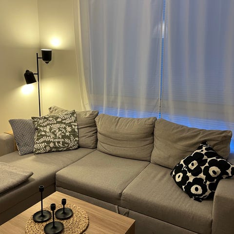 Divaanivuodesohva myyntiin kun ei uuteen asuntoon sovi.