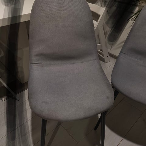 4 kpl kohtalaisessa kunnossa olevaa ruokapöydän tuolia ja 2 kpl, joissa päällinen huono (helppo vaihtaa). Voi ottaa vain neljä ehjää ja 2 halutessaan kaupan päälle.
