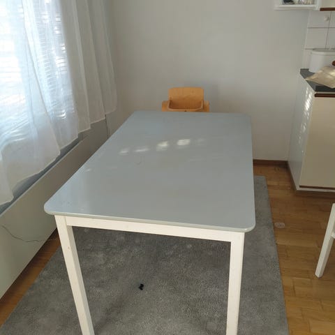 Annetaan tv-taso jossa ollut joskus lisänä vitriini ja hyllyjä ja tästä syystä toisessa päädyssä reiät. Päälliosassa pieniä jälkiä toisessa päässä mutta muuten täysin ehjä.
