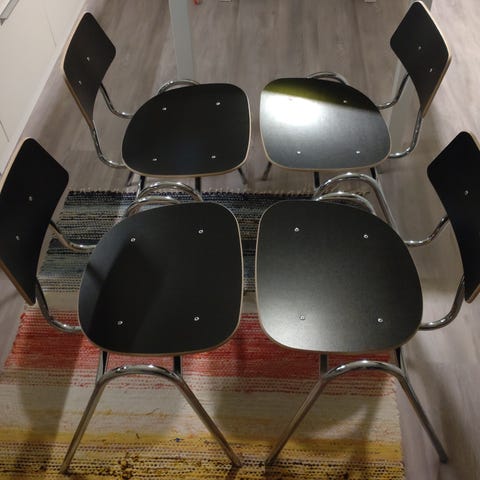Hakusanat: puujalat, Tuoli, nahkaverhoiltu, tuolit, nahkatuolit, istuin, minimalistinen, nahka, ruokailutila, nahkainen, modernismi, sisustus, mustat tuolit, ruokapöytä, moderni sisustus, keittiö, 1900-luku, ruokaryhmä, käytetyt huonekalut, ruokatuoli, tikkaukset, penkki, tuolisetti, ruokatuolit, neljä tuolia, huonekalu, verhoilu, huonekalut