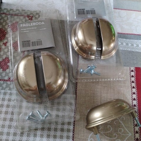 4 kpl IKEA FÅGLEBODA vetokahvaa 64 mm messinkiä + yksittäinen vetokahva