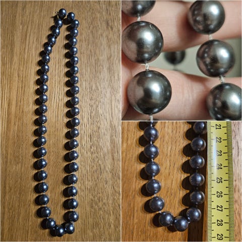Kaunis vanha mutta hyväkuntoinen pitkä helminauhakoru jonka valmistajaa ja materiaalia en tiedä.