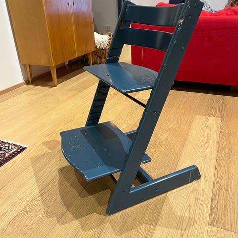 Myyntiin ehjä stokke TrippTrapp syöttötuoli.