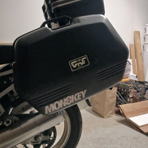 Givi monokey moottoripyörän takalaukku matkustajan selkänojalla ja uusi 3-laukun teline Givi Winrack 2. Kiinnitysruuvit mukana paketissa.