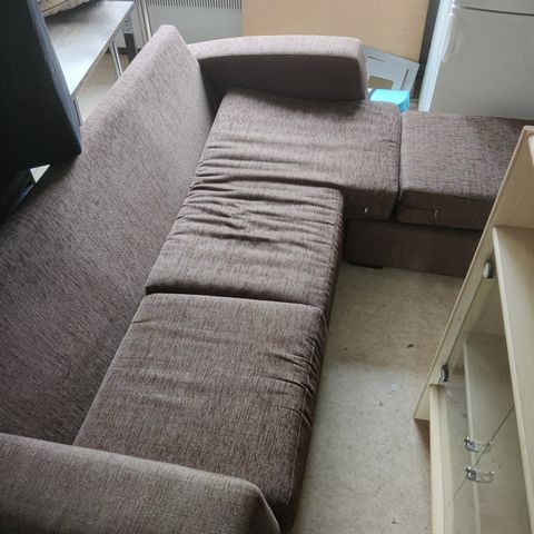 Beige sohva, istuintyynyt hieman menettäneet muotonsa. ainoastaan nouto ja mieluiten pian!