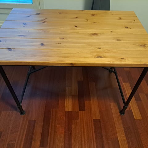 Kaksi tukevaa työpöytää harrastuksiin, varastoon tms. Menevät kasaan, helppo säilyttää. Helppo mekanismi ja todella tukevat metallijalat/ mekanismi. Levyt hyvässä kunnossa. Sopii moneen käyttöön verstaaseen yms
