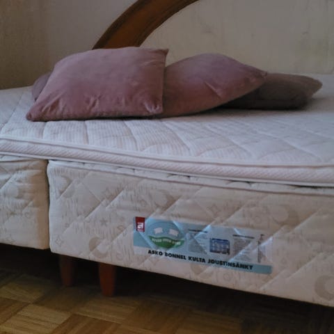 Annetaan elämää nähnyt Asko Bonnel runkopatja petauspatjan kera. Kissataloudessa ollut.
