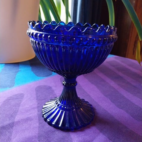 Myydään hyvänkuntoinen ja vähän käytetty Marimekon sininen mariskooli. Korkeus on 15cm ja halkaisija on 12cm.