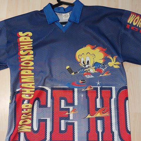 Myydään uudenveroinen jääkiekon MM-kisapaita parin vuoden takaa. Paidassa ei ole tahroja tai repeämiä tahi reikiä. Vaakuna ja teksti ovat kokokuvioita ja paita muutenkin äärimmäisen laadukas