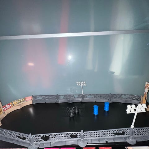 Myydään meille uutena ostettu Disneyn Cars -autorata, jonka mukana pokaali ja kaksi autoa (Salama McQueen ja Francesco).