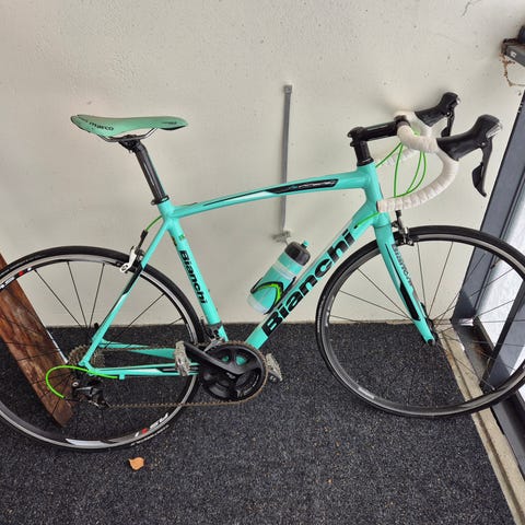 Merida road bike (frame M) + new 120TPI tires (700x25C, max 120 PSI) + brake pads + spare tires