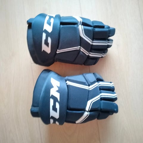 CCM Vector- jääkiekkohanskat, koko 12" (30,5 cm), musta/vaalea. Siistit, käytetyt, kuvissa näkyy käytönjäljet,ehjät.