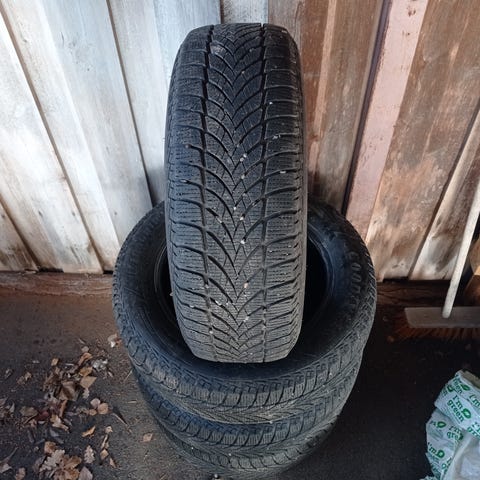 Yleisessä 205/55r16 koossa olevat kitkat. Pintaa noin 5-6mm. Yhdessä renkaassa paikka, en tiennyt siitä itsekkään kun vasta kuvia ottaessa. Itse olen näillä puolitoista talvea ajellut.
