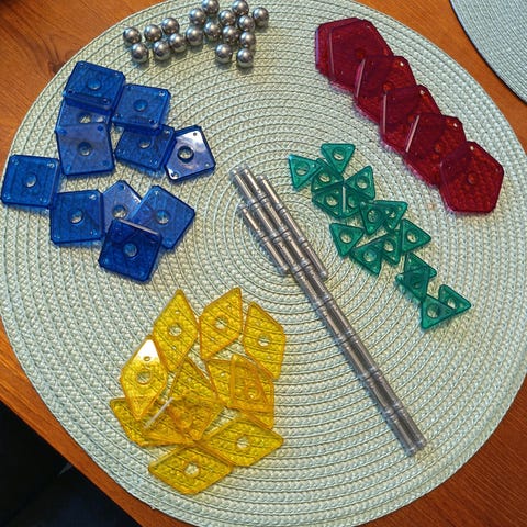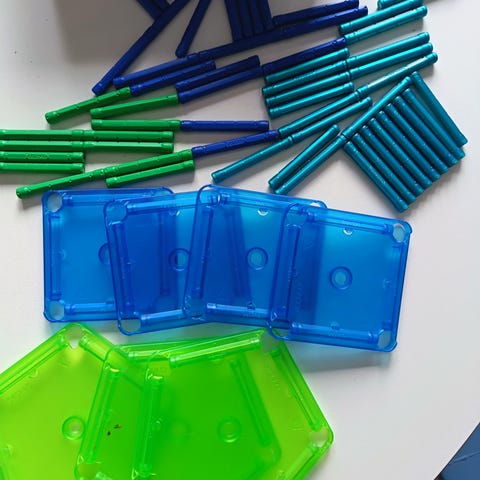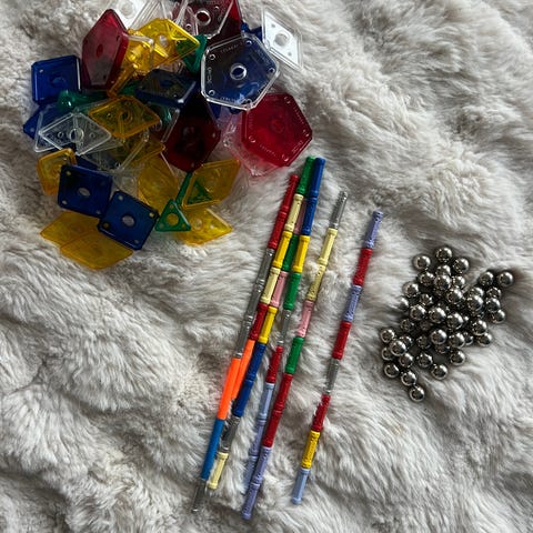 Paketti jossa on 24kpl sauvoja + 18 kuulaa. Lisäksi samaan kauppaan nuo toisen kuvan Geomagit, eli silmämääräisesti 70-80kpl palikoita ja melkein saman verran kuulia.